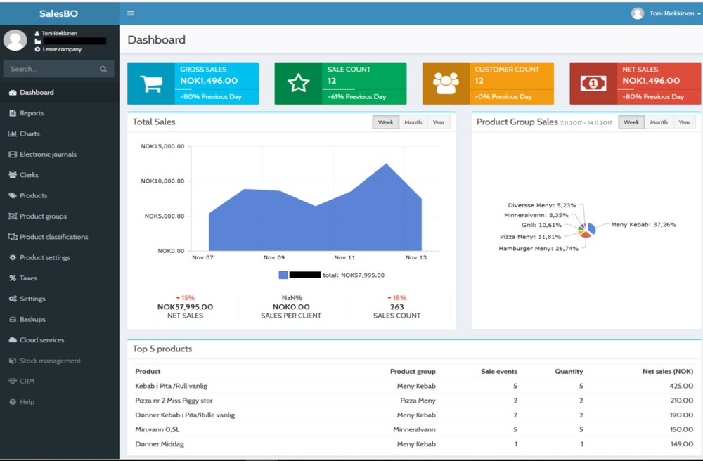 SalesBO ger dig statistik, olika rapporter samt kan hantera ditt lager. Den fiffiga Dashboard-funktionen ger dig en snabb överblick av försäljningen som presenteras på ett överskådligt och snyggt sätt. SalesBO är ett mycket bra verktyg för restaurang och butiksägare, för hovmästare och butikschefer.
